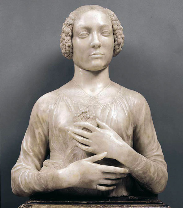 1475-Andrea del Verrocchio (1435-1488). Dame mit Blumenkranz, 1475-1480. Museo del Bargello, Firenze.