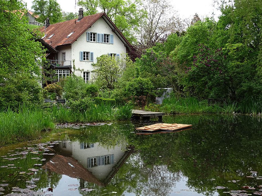 Isabelle Krieg (1971). Das einst weisse Häuschen am Weiher – jetzt ein schwarzes Haus. Für einen Sommer.