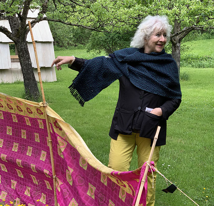 Ishita Chakraborty (1989) vor ihrem Zaun aus Saris, «The Songs of Resistence», 2023.