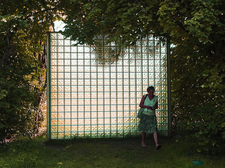 Esther Mathis. Let me see you like you see me. Mauer aus Glasbausteinen, 2019.