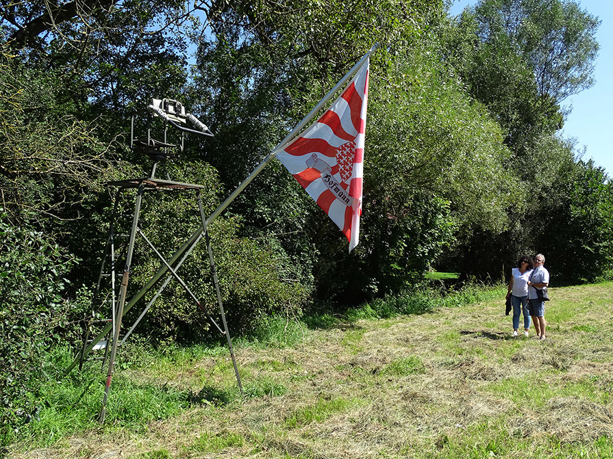 Hanspeter Hofmann. Uferlos, 2019. Hochsitz mit Fahne.