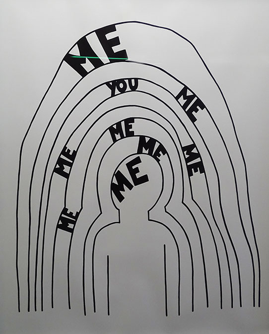 Olaf Breuning. Me, Me, Me, You, Me, 2017. Tusche auf Papier, 130x105cm. CHF 9720.