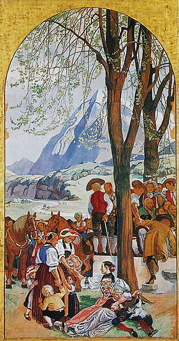 Albert Welti und Wilhelm Balmer (1865-1922). Die Landsgemeinde, 1910-12. Tafel 4. Ständeratssaal Bundeshaus Bern.