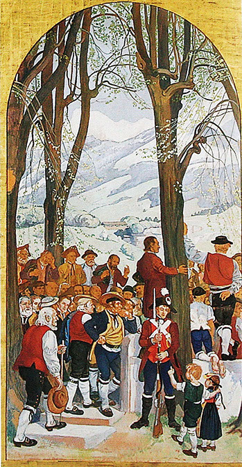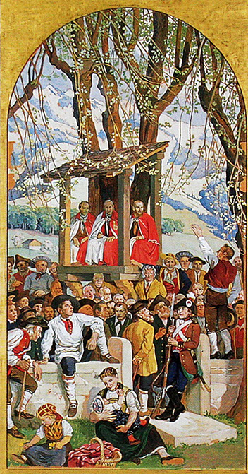 Albert Welti und Wilhelm Balmer (1865-1922). Die Landsgemeinde, 1910-12. Tafel 1. Ständeratssaal Bundeshaus Bern.