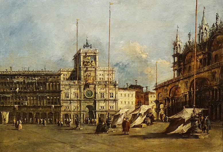 Francesco Guardi (1712-1793). Markusplatz in Venedig mit Torre dell'Orologio, 1770.