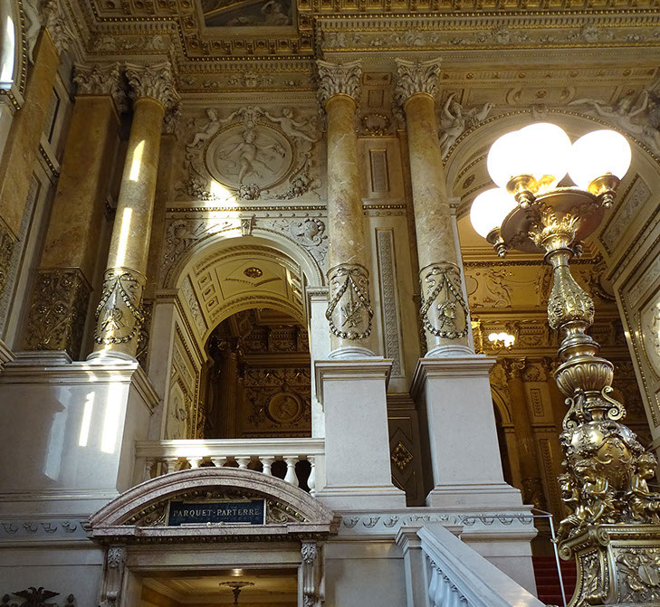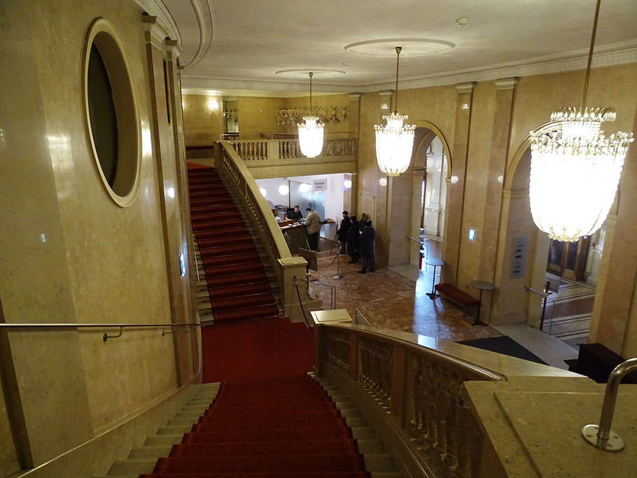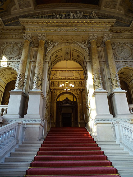 Die Feststiege mit dem Deckengemälde von Gustav Klimt: Theater von Taormina. Foto©BwagCommons.