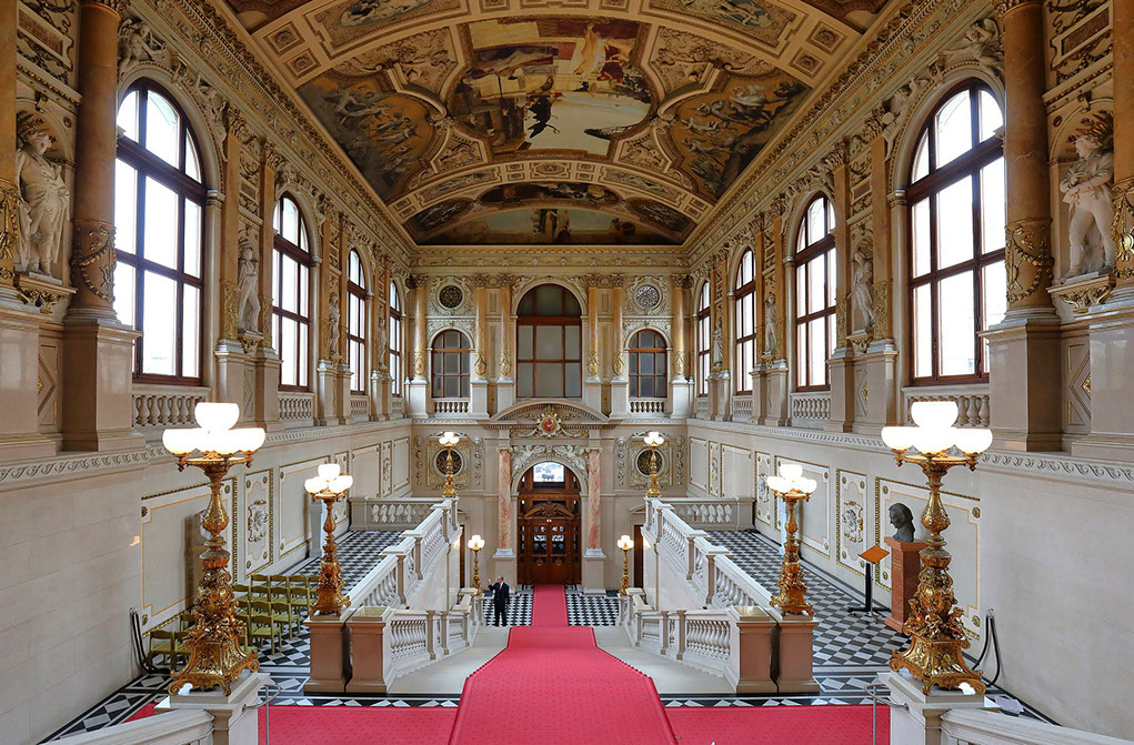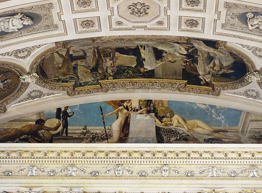 Mit Fresken von Gustav Klimt, Ernst Klimt und Franz Matsch.