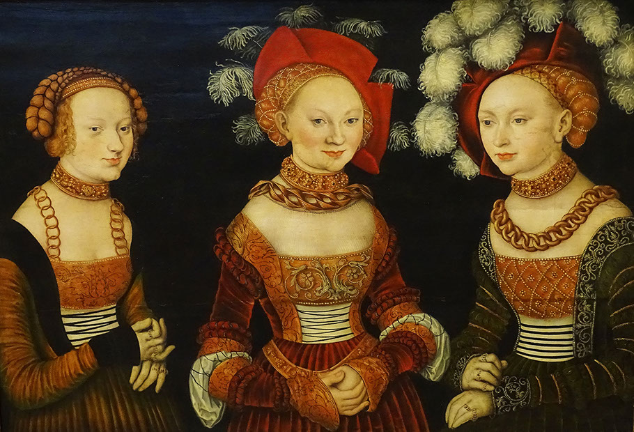 Lucas Cranach d.Ä. (1472-1553). Die Prinzessinnen Sibylla, Emilia und Sidonia von Sachsen, 1535.