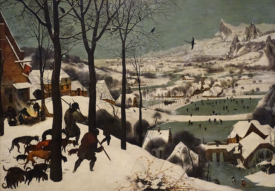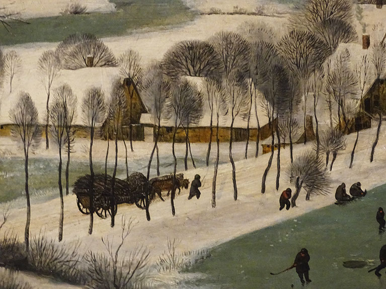 Pieter Brueghel d.Ä. (1525-1569). Jäger im Schnee, 1565. Detail.
