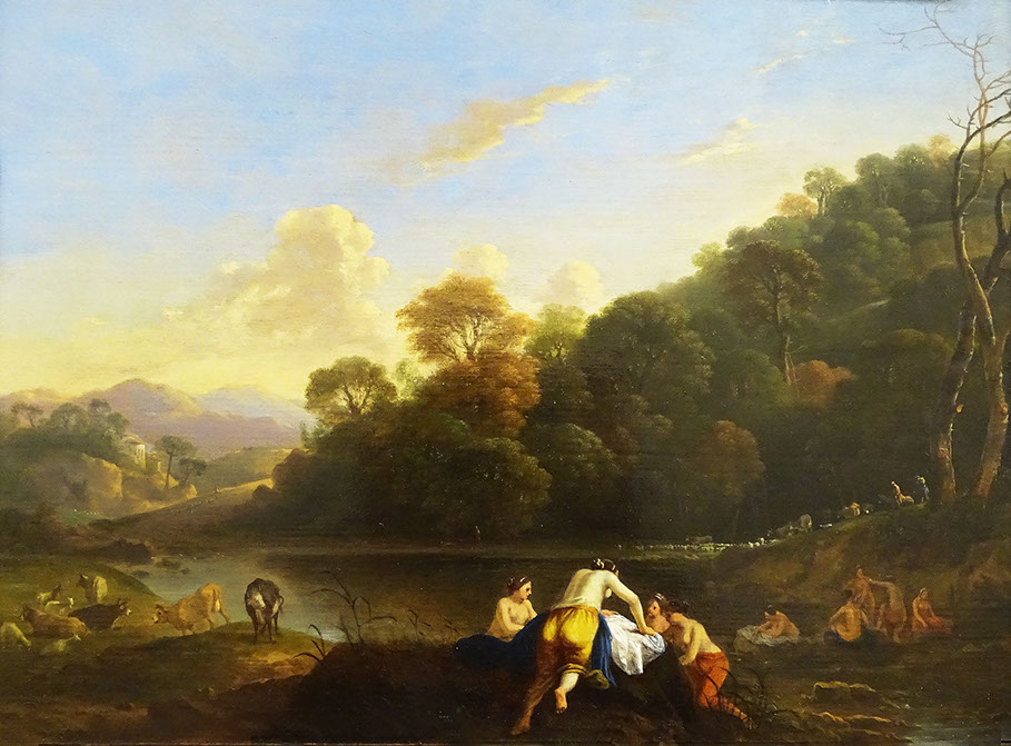1630-Dirk van der Lisse (1607-1669). Flusslandschaft mit badenden Nymphen, 1630-35. Detail. Stiftung Jakob Briner.