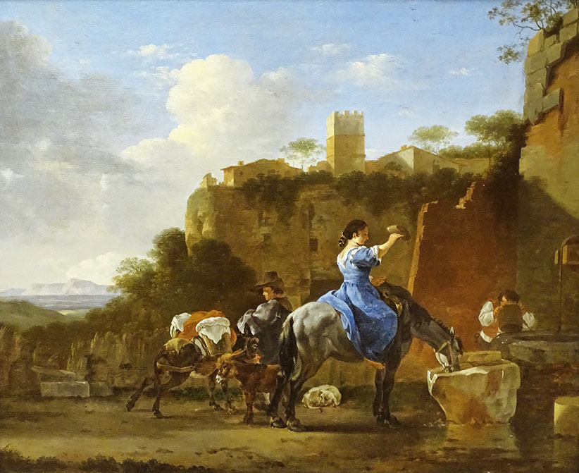 1640-Jan Asselij (1610-1652). Italienische Landschaft mit Reiterin an einem Brunnen, ca. 1640.
