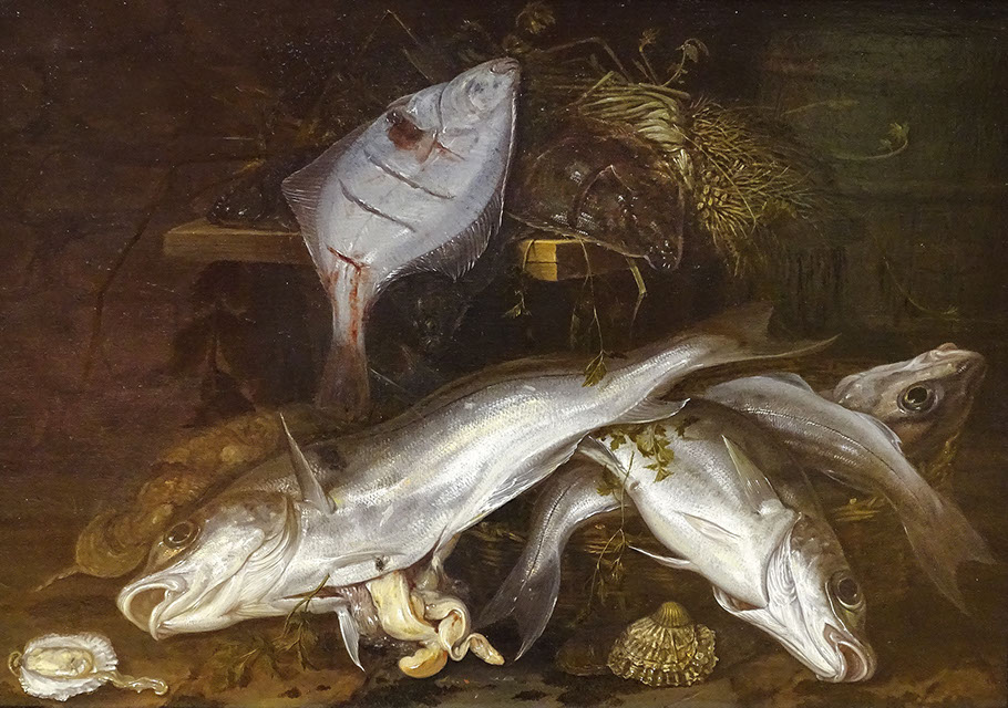 1674-Jacob Gillig (1636-1701). Stillleben mit Meerfischen, Muscheln und Seetang, 1674.