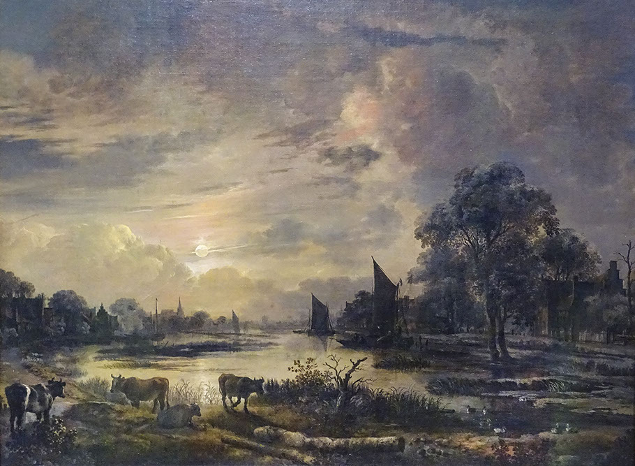 1650-Aert van der Neer (1603-1677). Kanallandschaft im Mndschein, 1650. Museum Heylshof, Worms.