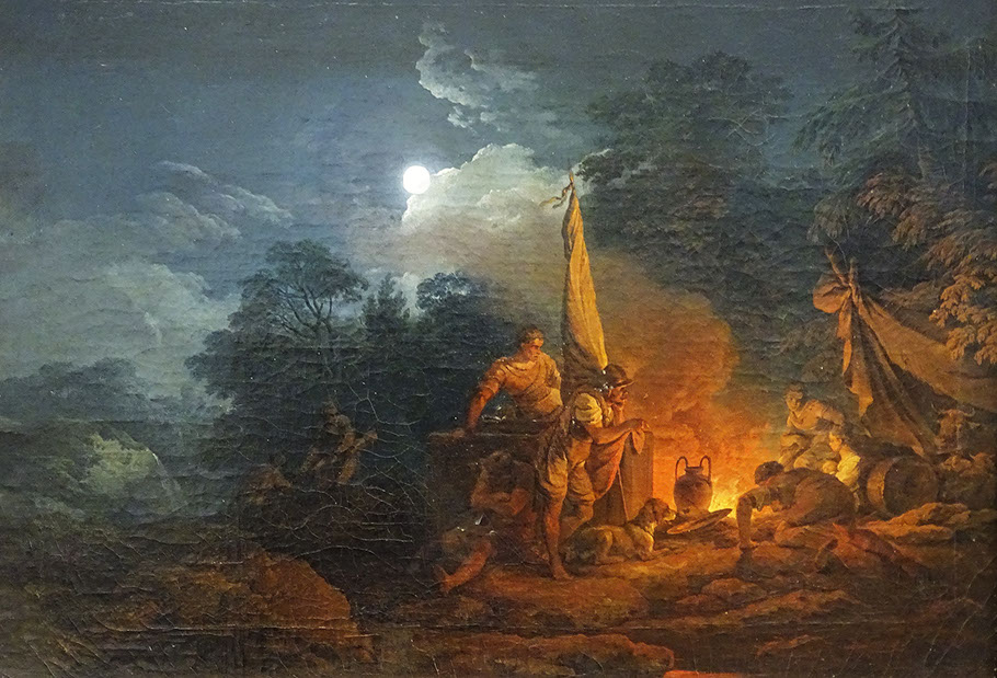 1763-Philipp Jakob Loutherbourg d.J. (1740-1812). Nächtliche Szene mit Soldaten am Feuer, 1763. Kunstmuseum Basel.