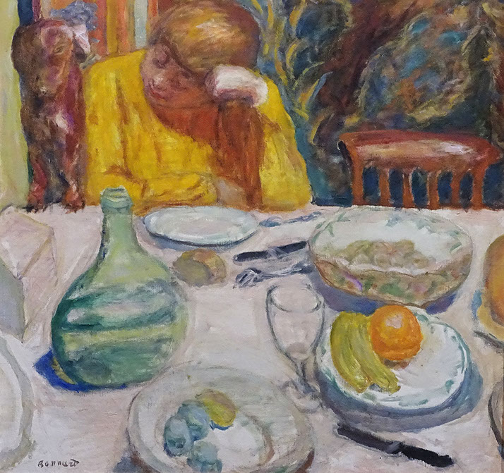 Pierre Bonnard (1867-1947). La carafe provençale (Marthe Bonnard et son chien Ubu), 1915.