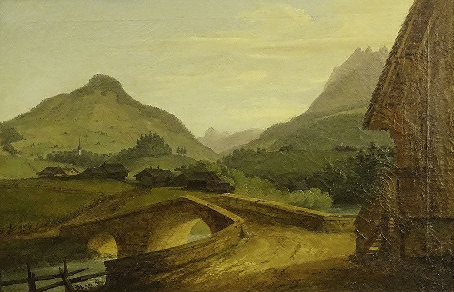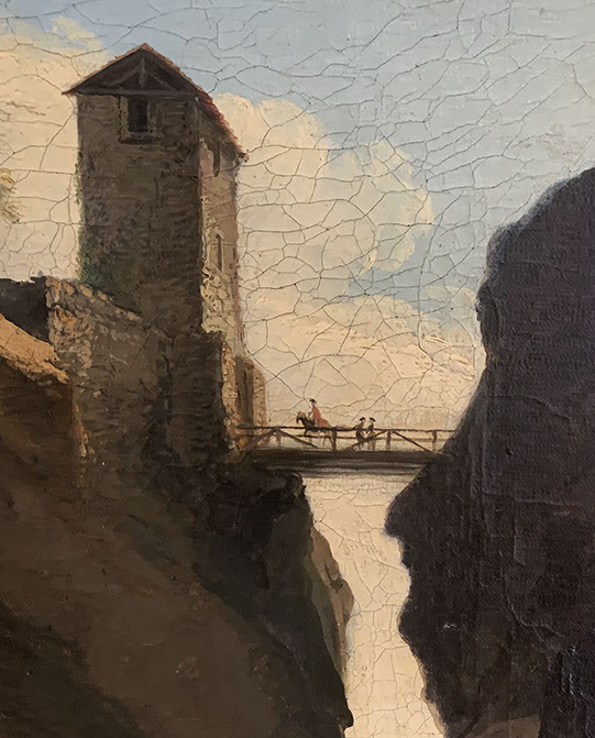 Caspar Wolf (1735-1783). Brücke und Dalaschlucht in Leuk, 1774-77. Detail. Musée d'Artdu Valais Sion.