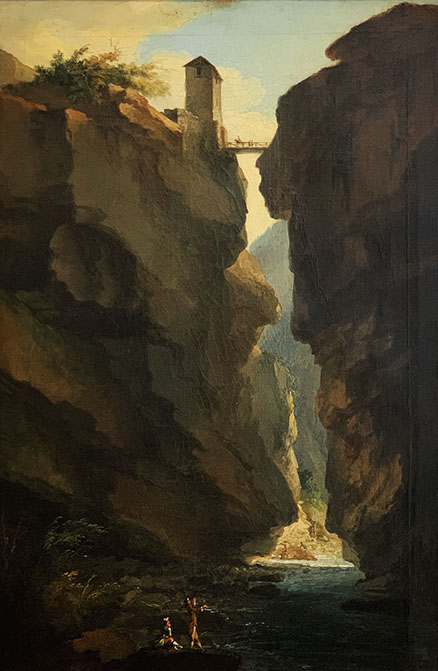 Caspar Wolf (1735-1783). Brücke und Dalaschlucht in Leuk, 1774-77. Musée d'Artdu Valais Sion.