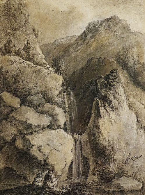 Caspar Wolf (1735-1783). Wasserfall bei Balsthal, 1777. Farbige Kreide auf Papier. Stiftung Murikultur.