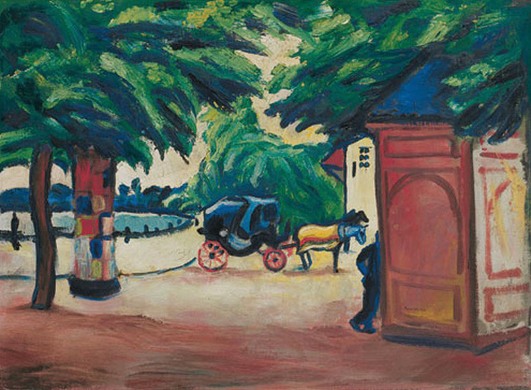 August Macke (1887-1914). Pferdedroschke an einem Parksee, 1911. Sammlung Kamm, Kunsthaus Zug.