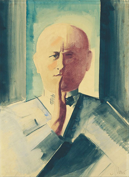 Oskar Schlemmer (1888-1943). Selbstbildnis mit erhobener Hand, 1931-32. Sammlung Kamm, Kunsthaus Zug.