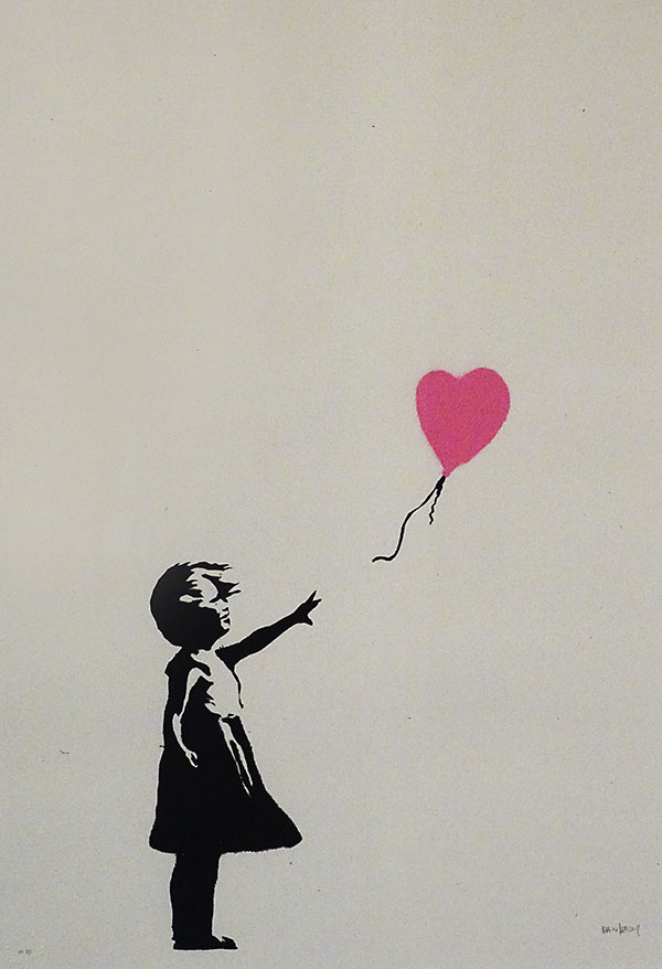 2018 bringt es bei einer Sotheby's-Auktion in London 1 Mio Pfund – und zerstört sich im Moment des Verkauf durch einen im Rahmen versteckten Shredder gleich selbst (teilweise). Auch mit dieser Aktion will Banksy Kritik am Kunstmarkt üben. Aber der Schuss geht hinten raus: Die Aktion steigert den Wert des Werkes nur noch. Die Käuferin bezahlt die Million locker und nennt das Bild um, in «Love is in the Bin». Dann vermacht sie das teilweise zerstörte Werk als Dauerleihgabe der Staatsgalerie Stuttgart.