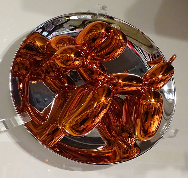 Was hier auf dem Teller wie ein Krebsgericht aussieht, ist eine kleine Version von Jeff Koons berühmtestem Werk: Der Balloon Dog. Das Original – drei Meter hoch – von 1993 wurde 2013 für 58.4 Mio Dollar versteigert.