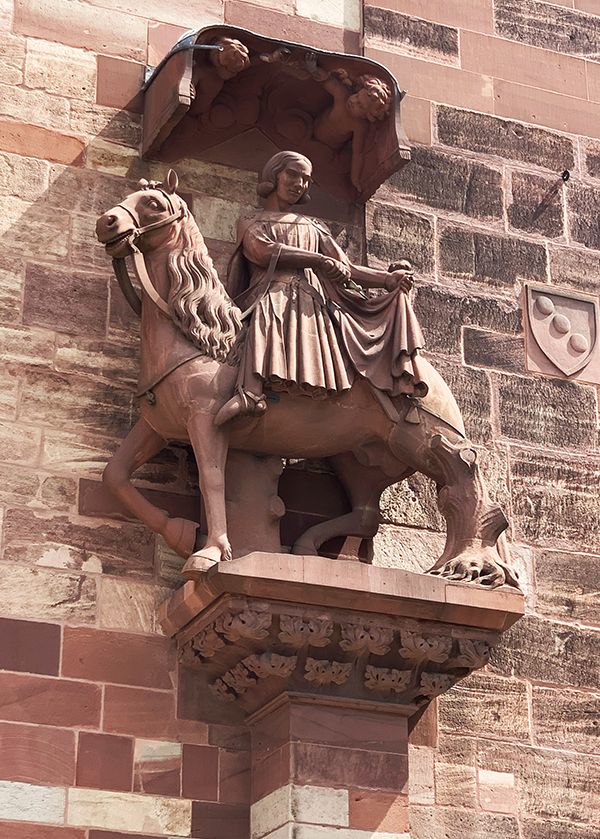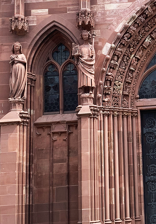Das Kaiserpaar wacht heute über dem Portal der Hauptfassade des Basler Münsters. In seiner rechten Hand trägt der Kaiser eine Miniatur des Münsters, die Kaiserin präsentiert ein Reliquienkreuz. Als das Heinrichsmünster am 11. Oktober 1019 geweiht wurde, soll das Kaiserpaar persönlich anwesend gewesen sein und wertvollste Geschenke mit nach Basel gebracht haben –