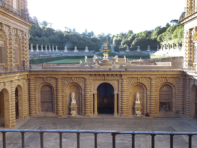 Lange passierte nichts mit dem unfertigen Gebäude. Achtzig Jahre später kamen die Medici ins Spiel. Es war die Gattin von Grossherzog Cosimo I, Eleonora de Toledo, die der Familie Pitti den unvollendeten Palast 1549 abkaufte. Sie liess ihn um- und ausbauen. Er sollte das Flair eines französischen Palastes bekommen, mit einem Cour d'honneur, und hintenraus sollte ein Garten die Anlage krönen.