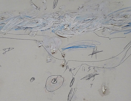 Nicht einfach, hier Kunst zu erkennen. Bei diesen Kritzeleien versteckt man sich wohl besser hinter dem Text des Museumsführers: «Ausgehend vom abstrakten Expressionismus entwickelte er die linkischen Zeichen, die er auf grossformatigen Leinwänden ins Monumentale steigerte».