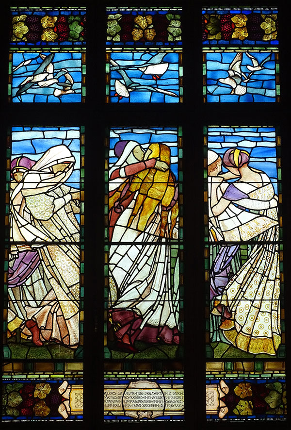 Die Buntglasfenster der Hauptfassade