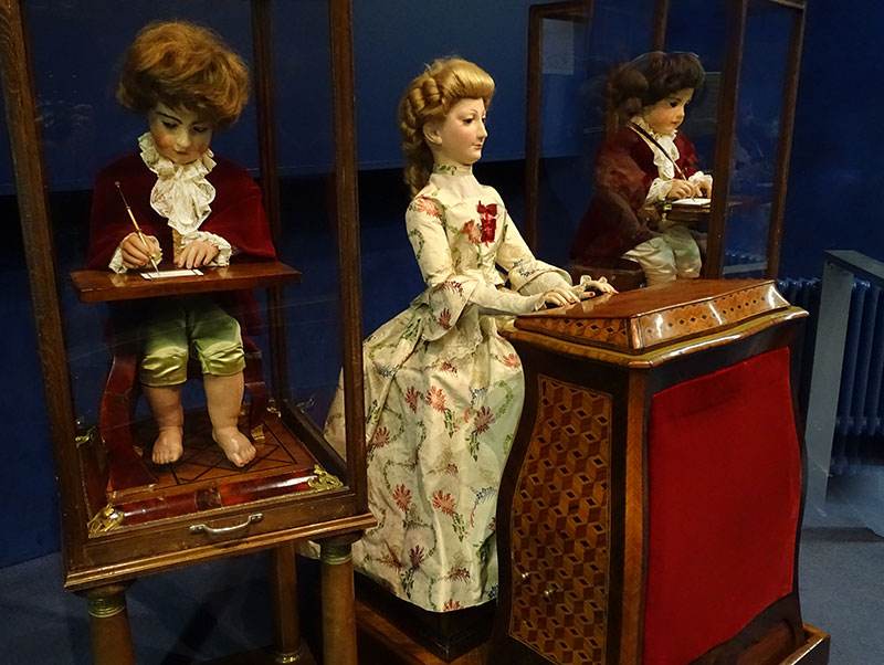 Zudem sind hier auch die berühmten Jaquet-Droz-Automaten zu sehen. Es handelt sich dabei um drei Androiden aus dem 18. Jahrhundert, die in feinster Uhrmacherkunst hergestellt wurden. Technische Wunderwerke der damaligen Zeit, die in ganz Europa herumgereicht und bestaunt wurden.