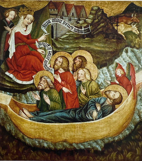 Jacobus war ein Jünger Christi. Ein Apostel. Er wurde 44 n.Chr. in Jerusalem hingerichtet – von König Herodes Agrippa I. Gemäss Legende sollen Anhänger seinen Leichnam irgendwann per Boot an die galizische Küste nach Spanien überführt haben, was auf diesem Gemälde dargestellt wird.