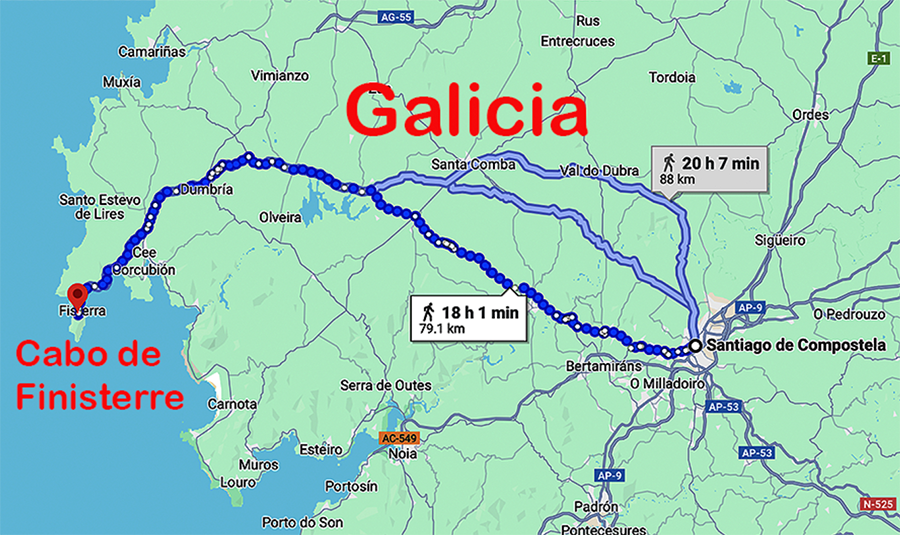 Der Camino de Finisterre wird zwar bereits in Chroniken des 12. Jahrhunderts erwähnt, dennoch zählt diese Extrastrecke offiziell nicht zum Jakobsweg. Zumal es am westlichen Zipfel weder Reliquien noch heilige Stätten Jakobus' gibt.