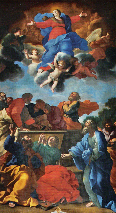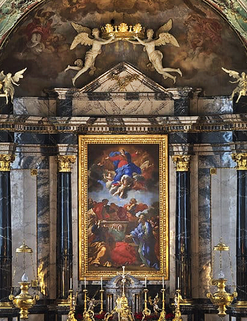 Das Altarbild ist über sechs Meter hoch und stammt von Giovanni Francesco Romanelli (1610-1662). Es ist ein Geschenk des Kardinals Giovanni Francesco Barberini an den St. Galler Abt Pius Reher (1644-45). Es zeigt eine «Himmelsaufnahme Mariens», die der berühmten «Maria Himmelfahrt» von Tizian nachempfunden ist, die in Venedig zu sehen ist, in der