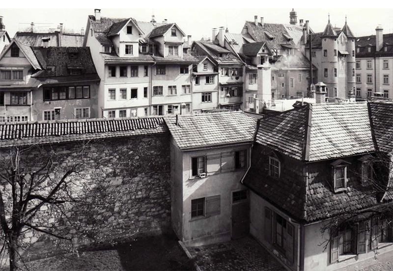 Unter dem St. Galler Reformator und Bürgermeister >Joachim Vadian (1484- 1551) wurde St. Gallen protestantisch. Das katholische Kloster stand nun inmitten einer reformierten Stadt. Um Konflikte zwischen Protestanten und Katholiken zu vermeiden, baute man 1546 rund um den Klosterbezirk eine riesige, bis zu 17 Meter hohe Mauer und schuf damit eine Art «Katholiken-Ghetto». Die Mönche und Bewohner des Klosters mussten ein Spezialtor (das «Karlstor») benutzen, um nach draussen zu ihren eigenen Ländereien zu gelangen.