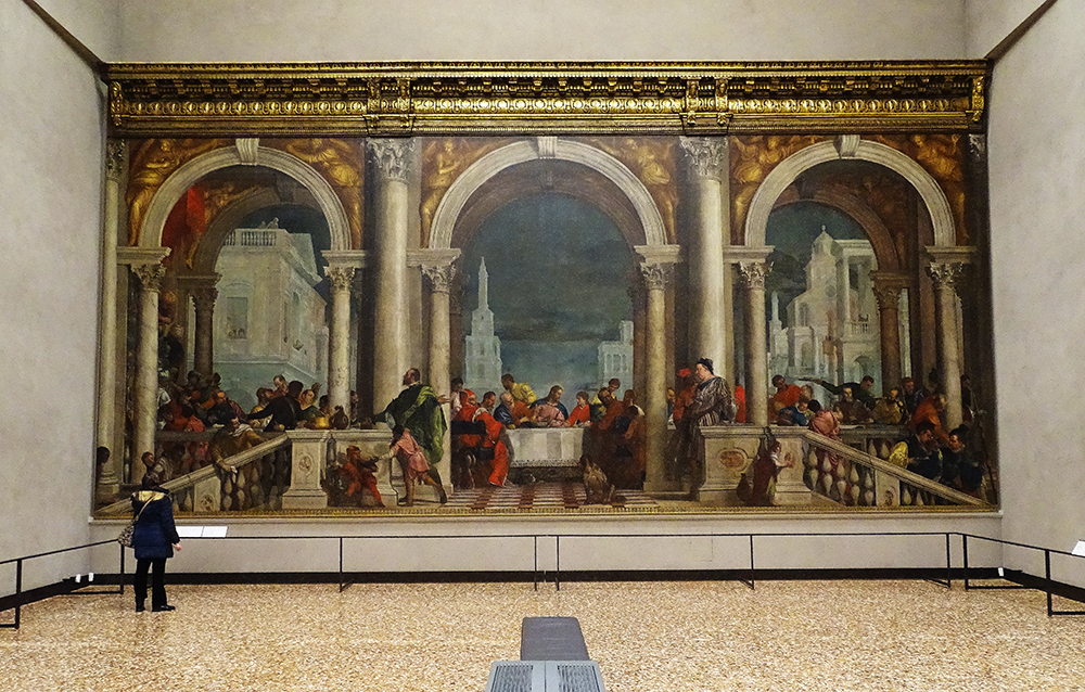 Es ist sagenhafte 13 Meter breit und soll damals das grösste Ölbild auf Leinwand der Welt gewesen sein. Veronese erschafft es für das Refektorium des Klosters Santi Giovanni e Paolo in Venedig. Und zwar als Ersatz für das 1571 bei einem Brand zerstörte «Letzte Abendmahl» von Tizian.
