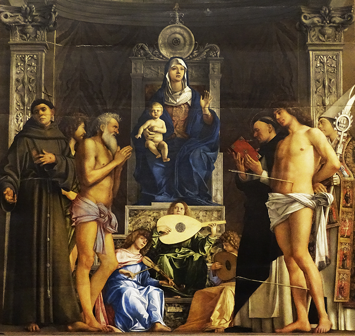Das Gemälde Sacra Conversazione heisst auch «Pala di San Giobbe». Weil es für einen Altar der Minoritenkirche San Giobbe in Venedig gemalt wurde. Diese Kirche wurde – aus welchen Gründen auch immer – von Napoleons Säkularisierung verschont und so verblieb das Gemälde dort. Nach Napoleons Sturz 1815 fand man aber, dass das Bild in einem Museum besser aufgehoben sei und überführte es in die Accademia. Es wurde sofort zu einem der berühmtesten Werke des Künstlers.