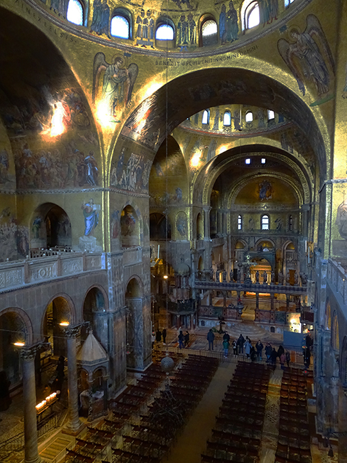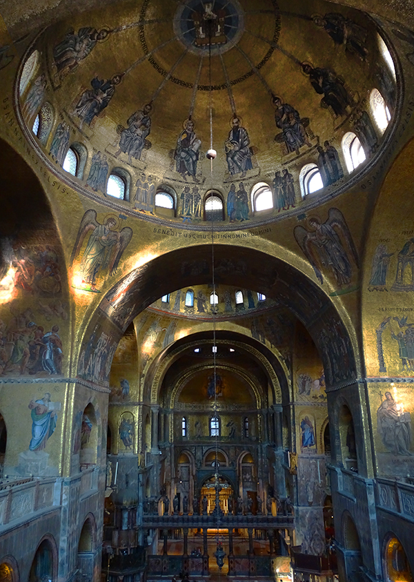 Schon beim Betreten des Doms versteht man, warum man ihm den Namen «Goldene Basilika» verpasst hat: Der gesamte Innenraum von San Marco ist über und über mit goldenen Mosaiken belegt. Dass sie tausend Jahre alt sind, sieht man ihnen nicht an – sie strahlen heute so schön wie damals, als sie im 12. und 13. Jahrhundert erschaffen wurden.