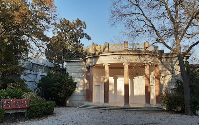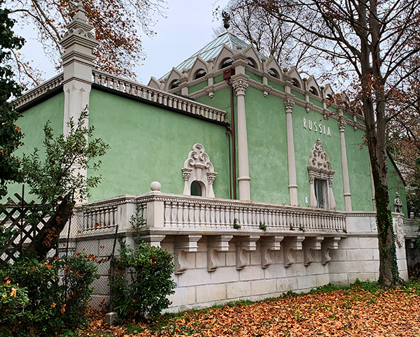 Heute stehen auf beiden Geländen noch dreissig Pavillons, die zwischen 1907 und 1964 entstanden sind. In der toten Zeit, wenn gerade keine Biennale stattfindet, ist das Betreten des Geländes nicht erlaubt – alles ist abgesperrt. Immerhin ist bei den Giardini ein alter Pavillon von aussen zu sehen: jener von Russland.