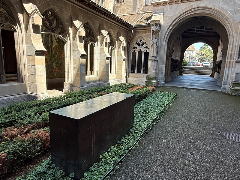 Im Kreuzgang des Fraumünsters steht dieses Denkmal für Katharina von Zimmern (1478-1547). Das Werk «ohne Titel» ist eine Bronzeskulptur und stammt von der Zürcher Künstlerin Anna-Maria Bauer (1947). Es ist das erste Denkmal, das die Stadt einer Frau widmet.