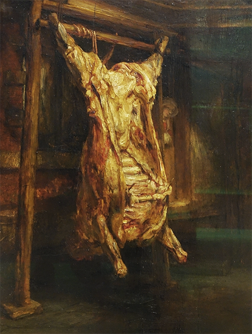 Kunsthistoriker sehen im gekreuzigten Ochsen auch eine Anlehnung an Rembrandts «geschlachteten Ochsen» von 1655. Was all die übrigen symbolischen Andeutungen sollen – man müsste den Künstler fragen können.