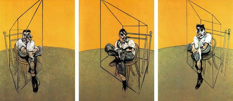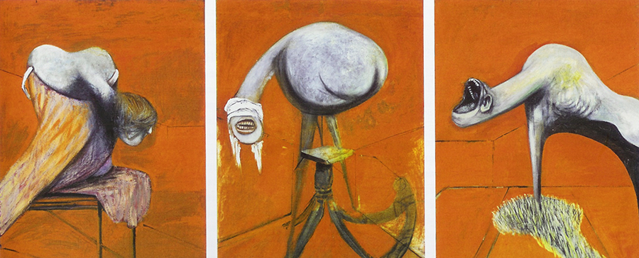 Das Triptychon kommt in der Regel in Altarbildernmit aufklappbaren Seitenflügeln zur Anwendung, aber für Bacon wird es zum Stilmittel.