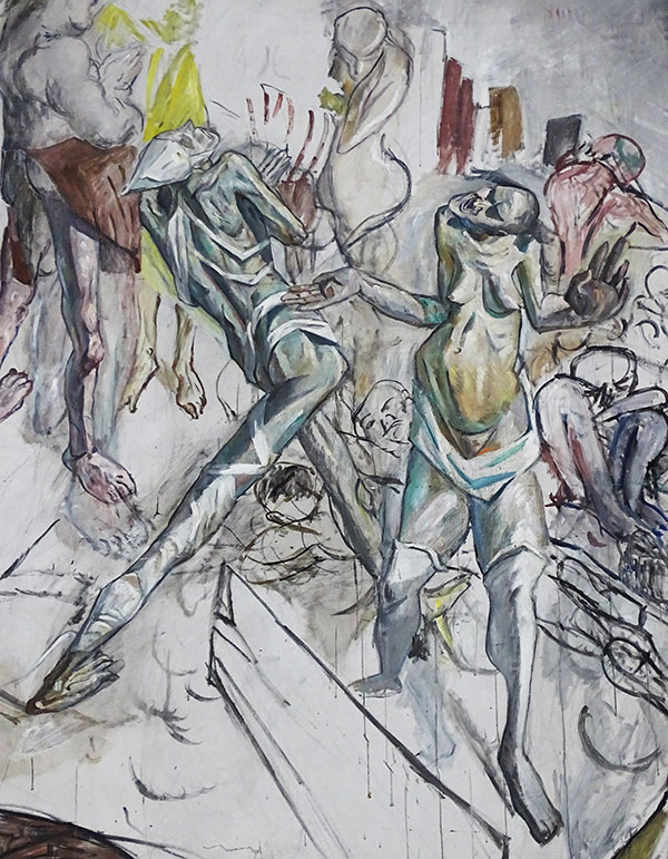 Die Erlebnisse im Ersten Weltkrieg bereiten ihm psychische Probleme. Als Sanitäter erlebt er das Grauen in den Lazaretten. 1915 erleidet er einen Nervenzusammenbruch und wird aus dem Kriegsdienst entlassen. Danach malt er dieses monumentale Werk von fast fünf Metern Breite. Er versteht es als «schaurigen Schmerzensschrei der armen getäuschten Menschheit».