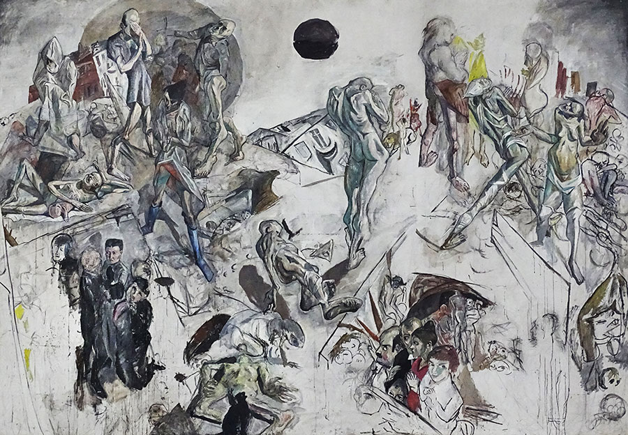 Und zeigt keine selig Erlöste und Auferstandene mehr, sondern geschundene und verstümmelte Kreaturen, die aus den Bombenlöchern hervorkriechen und auf den Schutthalden einen apokalyptischen Totentanz aufführen.