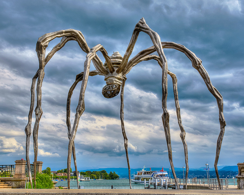 Ihr berühmtestes Werk steht heute vor dem Museum >Guggenheim in Bilbao: Es ist eine Monsterspinne von fast zehn Metern Höhe, die in ihrem Körper Eier aus Marmor trägt. Bourgeois erschafft «Maman» 1999 aus Stahl für die Tate Modern in London. Als Bronzeabgüsse geht ihr Monumentalwerk auf eine weltweite Reise – von Paris bis New York und von Mexiko bis Tokio. Zu ihrem 100. Geburtstag, den die Künstlerin knapp nicht mehr erlebt, reist «Maman» 2011 auch in die Schweiz, nach Zürich, Bern, Riehen und Genf.