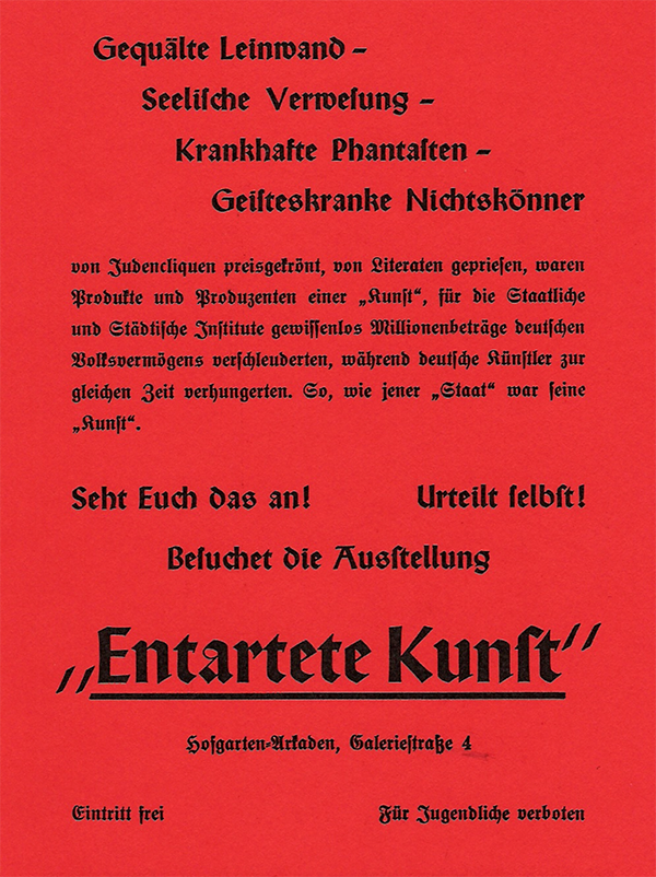 Flugblatt für die Ausstellung «Entartete Kunst» 1937 München. |