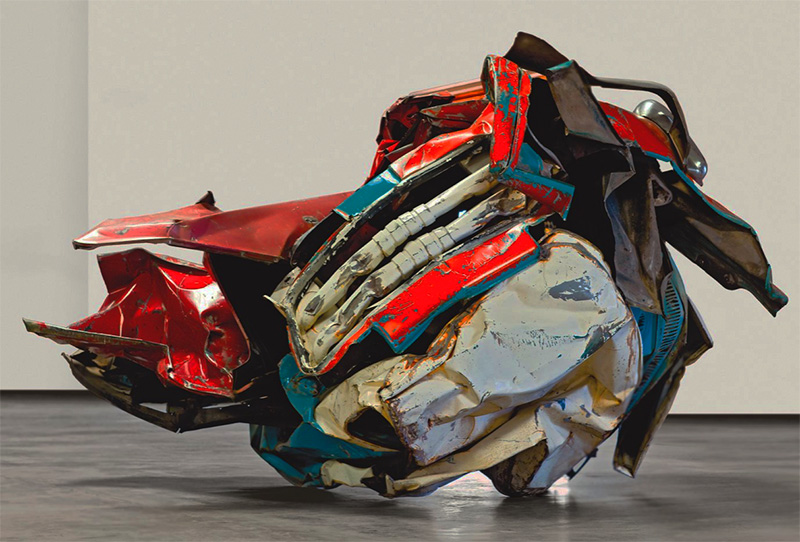 Dann findet er zu seinem Stil: In New York experimentiert er mit Abfallmaterial – meist Teile von Autokarosserien – und begründet seinen Ruf als «Junk Artist». Ab 1957 fertigt er seine skulpturalen Abfallkompositionen. Aus Autoteilen. Zerkleinert, gepresst, gerollt, zerknittert – und knalligfarbig lackiert. So gibt er Zerstörtem und Entsorgtem ein neues Leben.