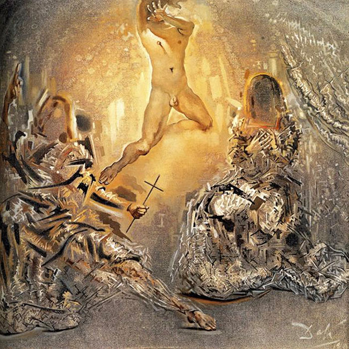 In religiösen Dingen ist Dalí hin- und hergerissen. Sein Vater ist Atheist, die Mutter streng katholisch. Er selbst wechselt mehrmals die Fronten. Mal tritt er aus der Kirche aus, mal bekommt er eine Audienz beim Papst. Und legt sein Glaubensbekenntnis ab. 1964-69 malt er eine geniale Serie von Bibel-Illustrationen zum Alten und Neuen Testament.