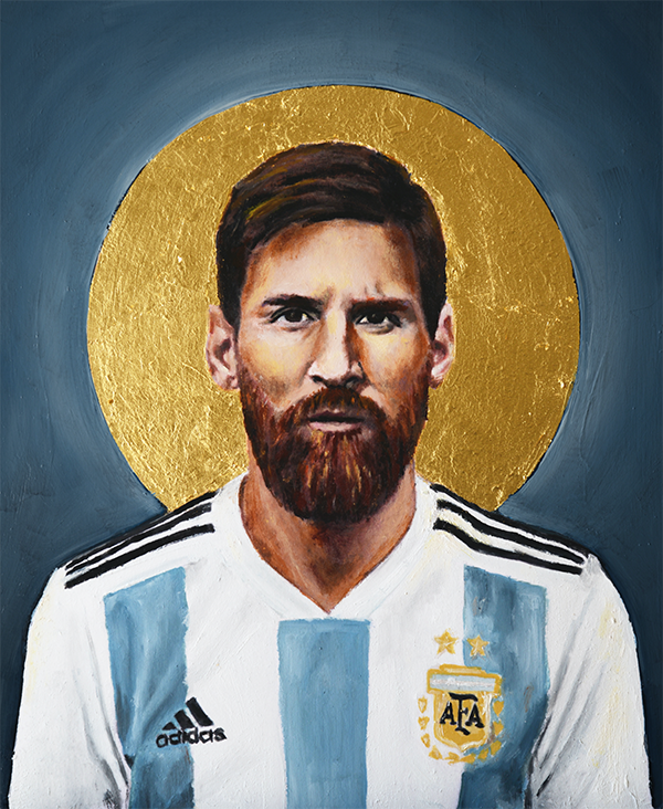 Vor allem bekannt – oder gar berühmt – macht er sich dann mit seinen Fussballer-Porträts. Und als ihm bewusst wird, dass – vor allem in Italien – Fussballstars wie Heilige verehrt werden, beginnt er, diese mit Heiligenschein zu malen – als Ikonen.