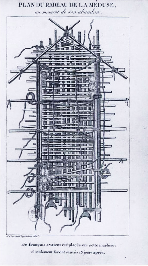 Im Louvre ist der originale Plan des grossen Flosses zu sehen, das der Kapitän der «Méduse» aus Masten und Rahen des auf Grund gelaufenen Schiffes bauen liess. Es mass 8 x 15 Meter und sollte der Rettung von 147 Soldaten dienen.